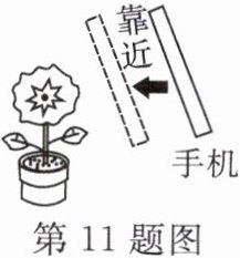 11. 小明用手机拍照,发现手机镜头过于靠近拍摄对象时(如图所示)无法正常对焦,拍出的照片模糊,此时像成在感光器(相当于光屏)______(填“前”或“后”)。小明发现将______透镜紧靠在手机镜头上可以解决这一问题,从而理解了手机微距镜头的工作原理。