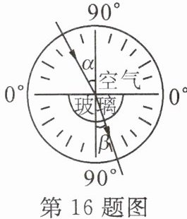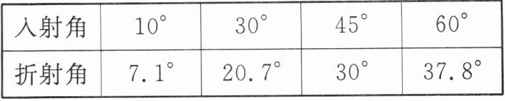 16. 如图是某同学利用光具盘探究光从空气斜射入玻璃中时的光路,经过多次实验并记录了如表数据。请分析回答下列问题。
