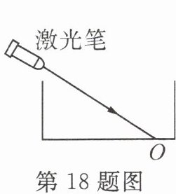 18. 如图所示,将一束激光射到空水槽的底部O点,形成一个光斑。向水槽内注入适量水后,水槽底部的光斑将向O点的______(填“左”或“右”)侧移动,在此过程中,折射角______(填“增大”“减小”或“不变”,下同)。停止注水,将水槽右端适当垫高,折射角将______。