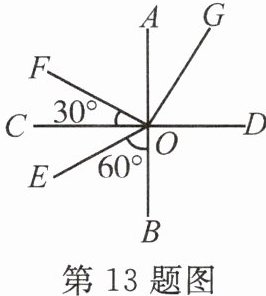 13. 如图所示,光线从某种透明介质射入空气,在分界面处发生反射和折射,则______是反射光线,______是折射光线,______是界面,______是法线,界面的______(填“上方”“下方”“左侧”或“右侧”)是空气。