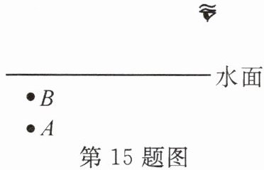 15. “潭清疑水浅”。请通过作光路图说明“疑水浅”这一现象产生的原因。图中A是水池底的一点,B为人眼看到的该点的位置。