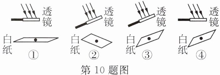 10. 小明利用太阳光测量凸透镜焦距,下列操作最合理的是 …………………( )