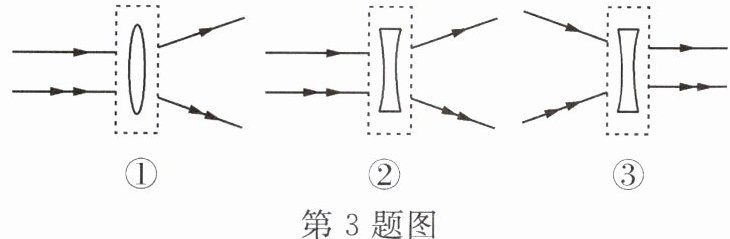 3. 根据入射光线和折射光线,虚线框内的透镜正确的是 …………………( )