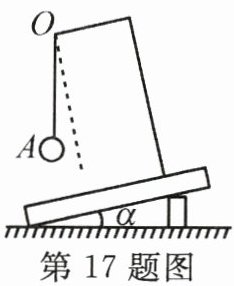 17. 小华用如图所示的装置判断重力的方向,球A所受重力的施力物体是______,缓慢改变木板的倾角α,可观察到悬线OA的方向______(填“改变”或“不变”);若要进一步验证重力方向向下的结论,还应进行的操作是______。