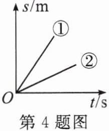 4. 如图是 s-t 图像,用弹簧测力计两次拉着重为 G 的物体竖直向上运动,两次运动的 s-t 图像如图所示,其对应的测力计示数分别为$ F_1、$$F_2,$则$ F_1 $和$ F_2 $的关系是………………………………( )