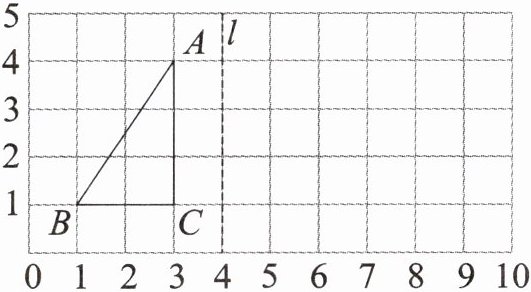 (2)画出三角形ABC关于直线l的轴对称图形A'B'C',并写出三角形A'B'C'各个顶点的位置。