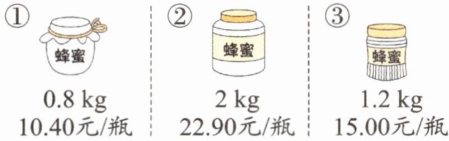 4.小熊去超市选购它最爱的蜂蜜,蜂蜜有三种,哪种最便宜呢?