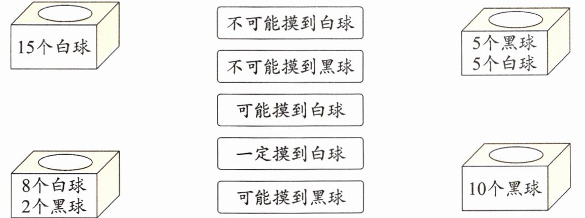 2.(常考)从盒子里摸出一个球,结果会是什么?连一连。
