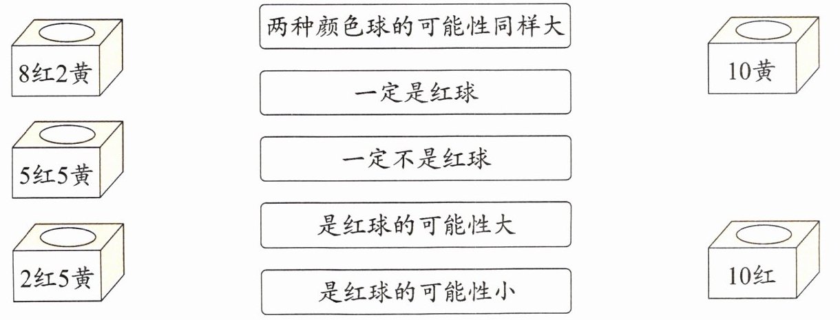 二、(重点)从下面的盒子里每次摸出一个球,把结果用线连起来。