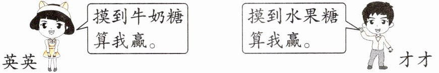 四、妈妈把一些牛奶糖和水果糖放进布袋里,英英和才才从布袋里各摸出一块糖。