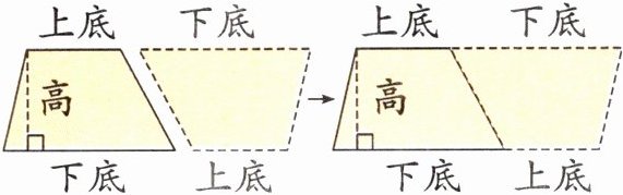 (3)因为平行四边形的面积= ( ),所以梯形的面积= ( ),用字母表示为( )。