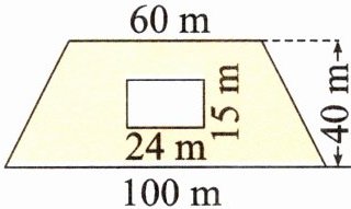 3. 如图,在一块梯形土地中间有一个长方形水池,其余的地方为麦田,麦田的面积是多少?
