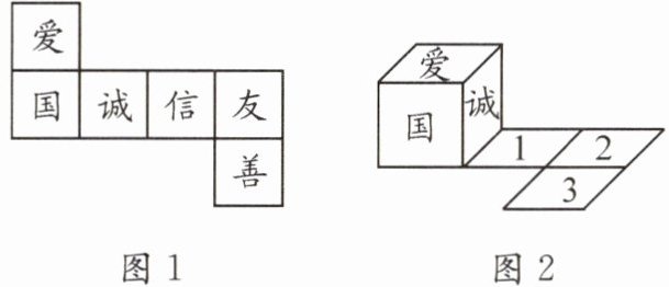 13. (2025·编写)图1是一个小正方体的表面展开图,小正方体从图2所示的位置依次翻到第1格、第2格、第3格,这时小正方体朝上一面的字是______。