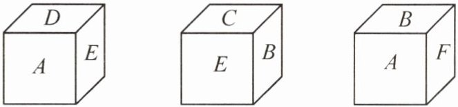 14. (1)(2025·编写)一个立方体的六个面上分别标有字母A,B,C,D,E,F,如图所示的是从三个不同方向看到的情形,请分别说出A,B,E面的相对面上分别是什么字母。