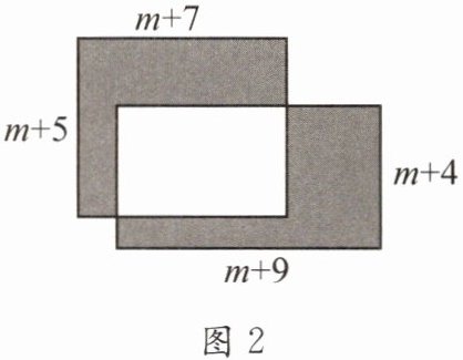 (2)将甲、乙两张纸片按图$2$所示的方式放置,没有重叠的部分用阴影表示,甲纸片阴影部分的面积为$S_{甲阴}$,乙纸片阴影部分的面积为$S_{乙阴}$.若$S_{甲阴} - S_{乙阴} = 4m$,求$m$的值.