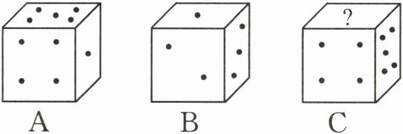 11. (2025·编写)下图是飞行棋的一颗骰子,根据图中A,B,C三种状态所显示的数字,推出“?”处表示的数字是____.