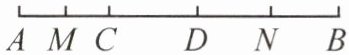 (2)(2025·编写)如图,$C$,$D是线段AB$上的两个点,$CD = 3\mathrm{cm}$,$M是AC$的中点,$N是DB$的中点,$AB = 9.8\mathrm{cm}$,那么线段$MN$的长等于______$\mathrm{cm}$.
