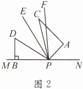 (2)如图2,若三角板PAC的边PA从PN处开始绕点P按逆时针方向旋转一定度数,PF平分∠APD,PE平分∠CPD,求∠EPF的度数.