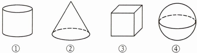 (2)(2025·编写)下列几何体:①圆柱;②正方体;③棱柱;④球;⑤圆锥。在这些几何体中截面可能是圆的有____。(填序号)