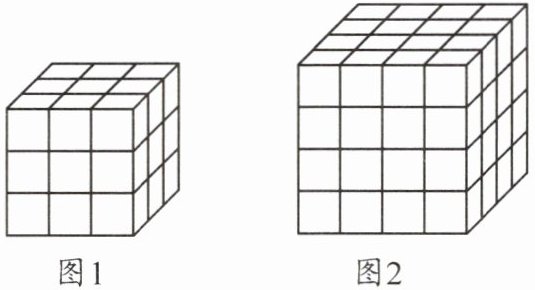 15. (2025·编写)如图1,有一个正方体,它的表面涂满了红色,在它每个面上切两刀,得到27个小正方体,而且凡是切面都是白色。