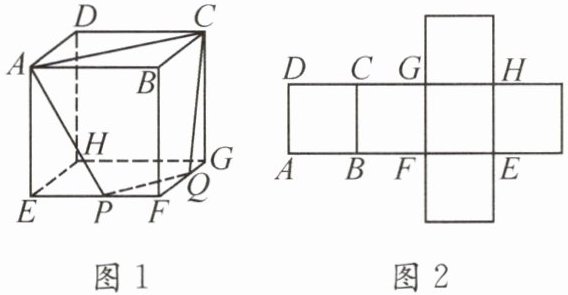 14. (2025·编写)如图1是一个正方体,它的表面展开图为图2,四边形APQC是切正方体的一个截面。问:截面的四条线段AC,CQ,QP,PA分别在展开图的什么位置上?