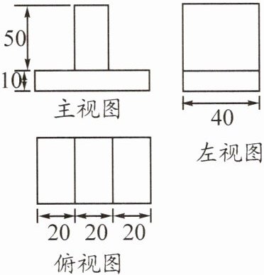 因此主视图的面积为$2×2×7=28(cm²)$,左视图的面积为$2×2×5=20(cm²)$,俯视图的面积为$2×2×7=28(cm²)$,所以该几何体的表面积为$(28+20+28)×2+2×2×4=168(cm²).$