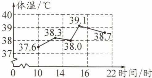 7. (2025·编写)如图是护士统计一位病人的体温变化图,这位病人 $ 10 \sim 22 $ 时的最高体温与最低体温的差为( )