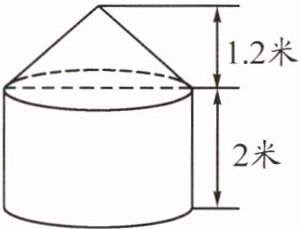 10. (2025·编写)一个装满稻谷的粮囤,上面是圆锥形,下面是圆柱形,量得圆柱底面的周长是20π米,高2米,圆锥的高是1.2米。