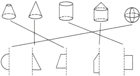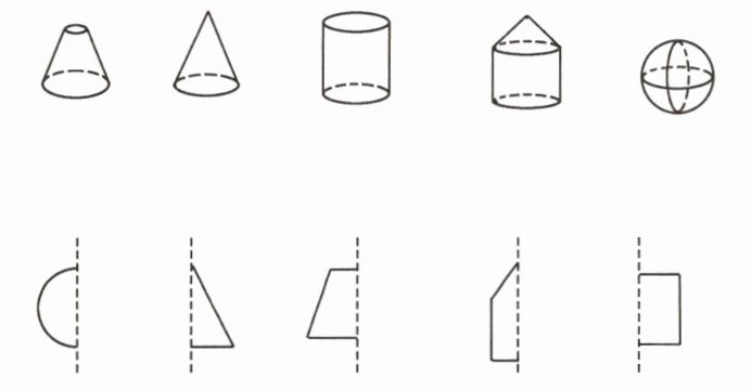 9. (1)(2025·编写)如图,第二行的图形绕虚线旋转一周,便能形成第一行的某个几何体,请把相对应的图形和几何体用线连起来。