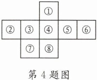 4. (2025·成华)将如图所示的图形剪去两个小正方形,使余下的部分图形恰好能折成一个正方体,应剪去的两个小正方形是______。