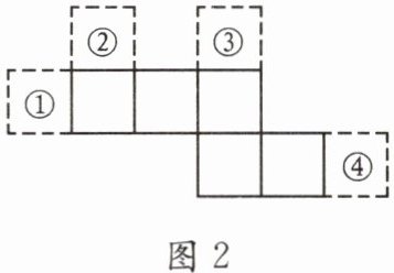 11. (1)(2025·编写)已知如图1所示的小正方形和图2中的所有小正方形都完全一样,将如图1所示的小正方形放在图2中的①②③④的某一个位置,放置后所组成的图形不能围成一个正方体的位置是______。