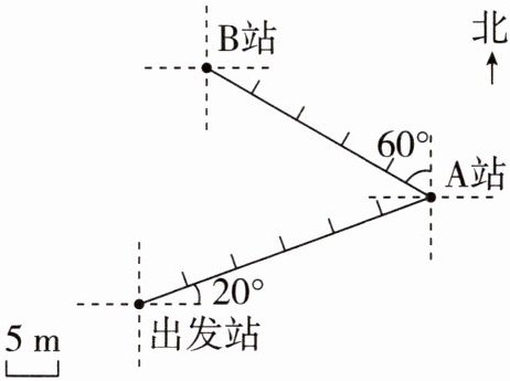 (2)智能机器人最终的目的地是C站。C站位于B站西偏南$40^{\circ }$方向,距B站5 m的位置上。请你在图上标出C站的位置。