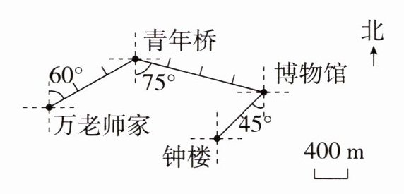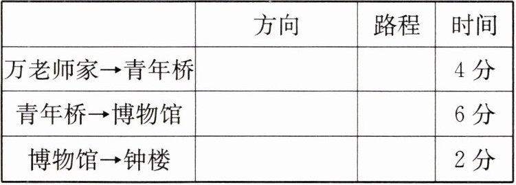 3. 万老师非常喜欢跑步。一天,他从家出发,跑步经过青年桥、博物馆,最后到达钟楼。
