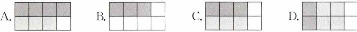 (1)$\frac{3}{4}\ m^2的\frac{1}{2}$是多少平方米?用画图的方式表示正确的是( )。
