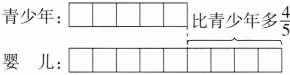 (3)龙一鸣根据“婴儿每分钟心跳的次数比青少年多$\frac{4}{5}$”画出了下面的示意图,下列说法错误的是( )。