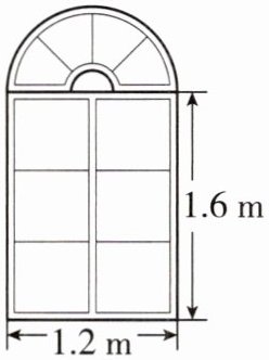 5. 礼堂里的一面玻璃墙(如图),上面是一个半圆形,下面是一个长方形。已知长方形的长是1.6 m,宽是1.2 m。这面玻璃墙的面积大约是多少平方米?(得数保留一位小数)