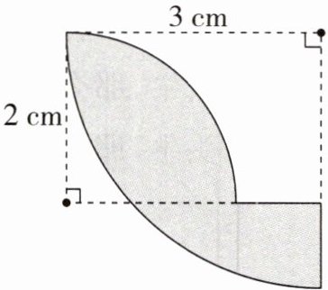 3.14×2²×90°/360°+3.14×3²×90°/360°-3×2=4.205(cm²)