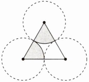 6. 在体育课上,老师为了开展拓展活动,借助三个半径是6 m的圆,画出了如图中阴影部分一样的图形。求阴影部分的周长与面积。