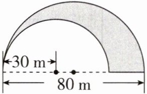 面积:3.14×(80÷2)²÷2-3.14×30²÷2=1099(m²)