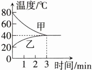 (1)由图可知,甲表示热水,乙表示冷水,所以热水温度变化量$\Delta t_{热}=80℃ - 40℃=40℃$,冷水温度变化量$\Delta t_{冷}=40℃ - 20℃=20℃$,由于不计热量损失,则$Q_{吸}=Q_{放}$,由$Q=cm\Delta t$知,$c_{水}m_{冷}\Delta t_{冷}=c_{水}m_{热}\Delta t_{热}$,则$\frac{m_{冷}}{m_{热}}=\frac{\Delta t_{热}}{\Delta t_{冷}}=\frac{40℃}{20℃}=\frac{2}{1}$。