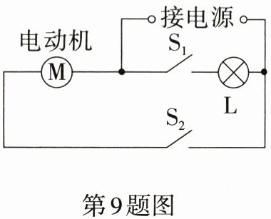 9.如图是电冰箱的电路简化示意图。M是压缩机内的电动机,L是电冰箱内的照明灯泡。根据你的了解,下列说法错误的是