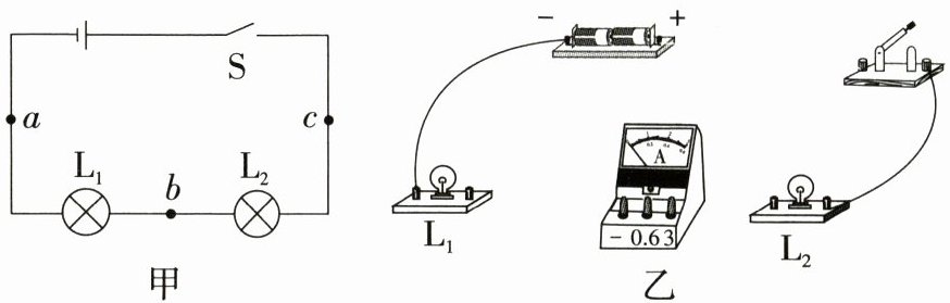 11.在"探究串联电路中各处电流的关系"的实验中,小红同学选用两个不同规格的小灯泡组成了如图甲所示的串联电路。