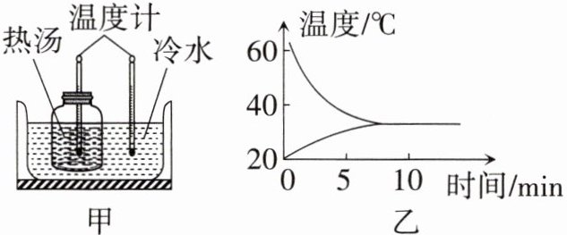 11.如图甲所示,将热汤放入冷水中,图乙反映了两者温度随时间变化的关系。若不计热量损失,由此图像______(选填“能”或“不能”)得出水的比热容比汤的比热容大,你判断的理由是______。