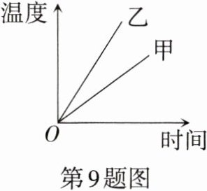 9.两个相同的容器分别装了质量相同的甲、乙两种液体。用同一热源分别加热,液体温度与加热时间的关系如图所示。下列说法正确的是 ( )