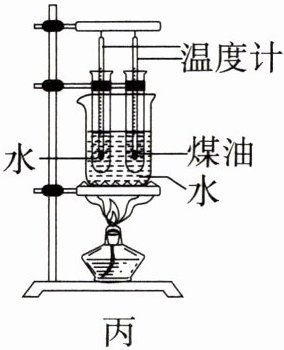 (4)由图丙知,装有水和煤油的两支试管,都放在同一烧杯中加热,采用水浴加热法,受热更均匀;使用同一热源,能更好地控制加热时间相同。