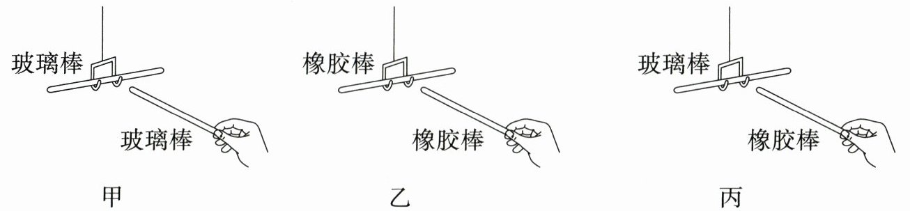 (2)甲、乙两图呈现相互排斥现象,图丙呈现相互吸引现象,得出丝绸摩擦过的玻璃棒所带电荷与用毛皮摩擦过的橡胶棒所带电荷是不同的,若相同,不可能出现相互吸引现象。