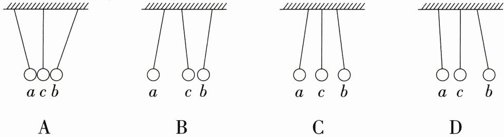 (4)假如自然界存在第三种电荷,且遵循已有的电荷间的作用规律。a、b、c三个轻质小球分别带正电荷、负电荷和第三种电荷,均用绝缘细线竖直悬挂,相互靠近但始终不接触,三个小球的最终状态可能为______(填字母序号)。