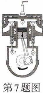 7.如图是汽油机工作时某个冲程的示意图,下列说法正确的是 ( )