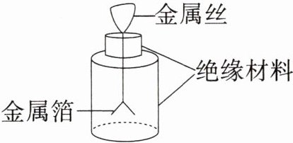 2. 如图为小兴自制的验电器。当用带负电的橡胶棒接触金属丝时,验电器的金属箔张开,接触瞬间电荷从______,电流方向为从______。(均选填“橡胶棒到金属丝”或“金属丝到橡胶棒”)