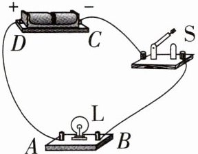 D 解析 在电源内部,电流从电源负极出发回到电源正极,即从C→D,A错误;在电源外部,电流从电源正极出发,经过用电器回到电源负极,由于自由电子定向移动方向与电流方向相反,所以小灯泡中的自由电子由B向A定向移动,B错误,D正确;小灯泡工作时持续消耗电能,不消耗电流,C错误。